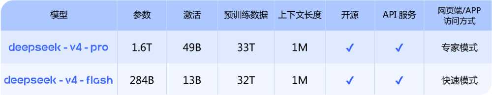 据DeepSeek官方介绍,DeepSeek-V4 拥有百万字超长上下文,模型按大小分为两个版本: