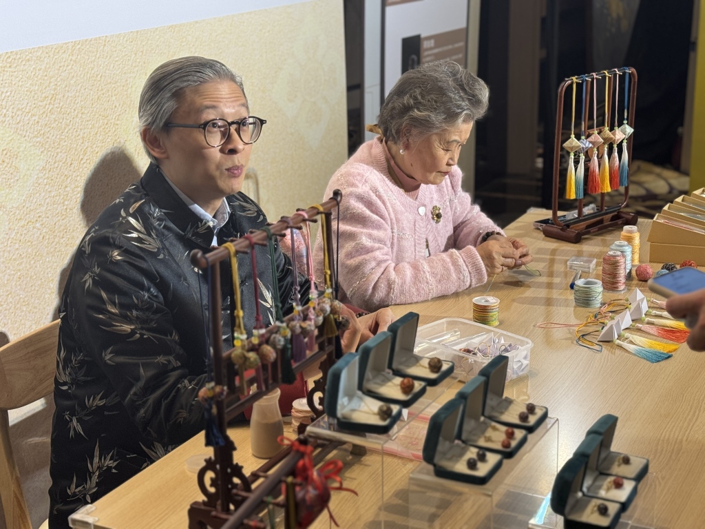 今日会场之外,非遗香道、非遗盘扣、非遗香囊、非遗绒绣等非遗项目纷纷呈现,文创展品区则汇集了多位两岸青年设计师的作品,涵盖城市微更新、民族潮尚等多种主题。这些文创展品依托“潮汇海上·两岸青年创新行动”呈现,该活动举办六年已孵化700余名台青设计师。