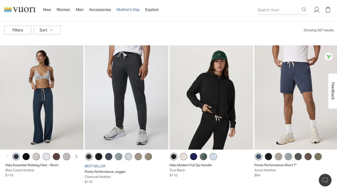 在社交媒体讨论中,其DreamKnit和BlissBlend面料的轻盈触感和柔软度,成为大部分消费者决定购买Vuori的主要因素。