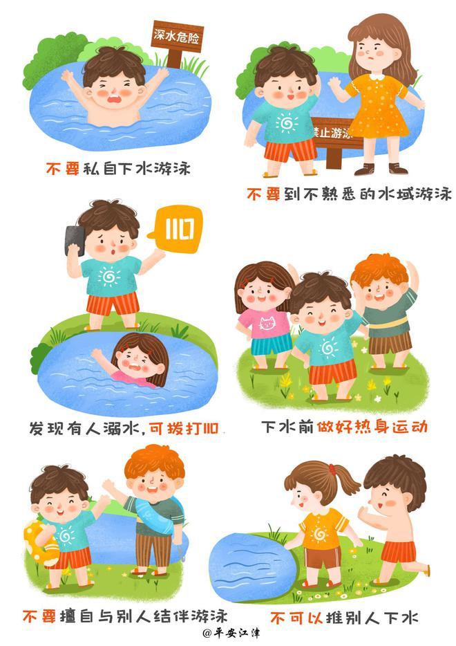 4.不到不熟悉、无安全设施、无救援人员的水域游泳。