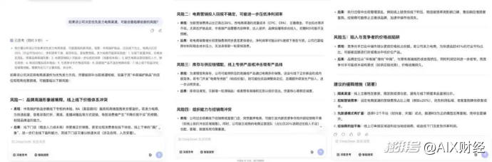 为了验证连续推理能力,我们追问发力电商渠道的风险,响应用时仅3秒,直接在第一轮建立的背景基础上继续推导,V4识别出五项新风险。