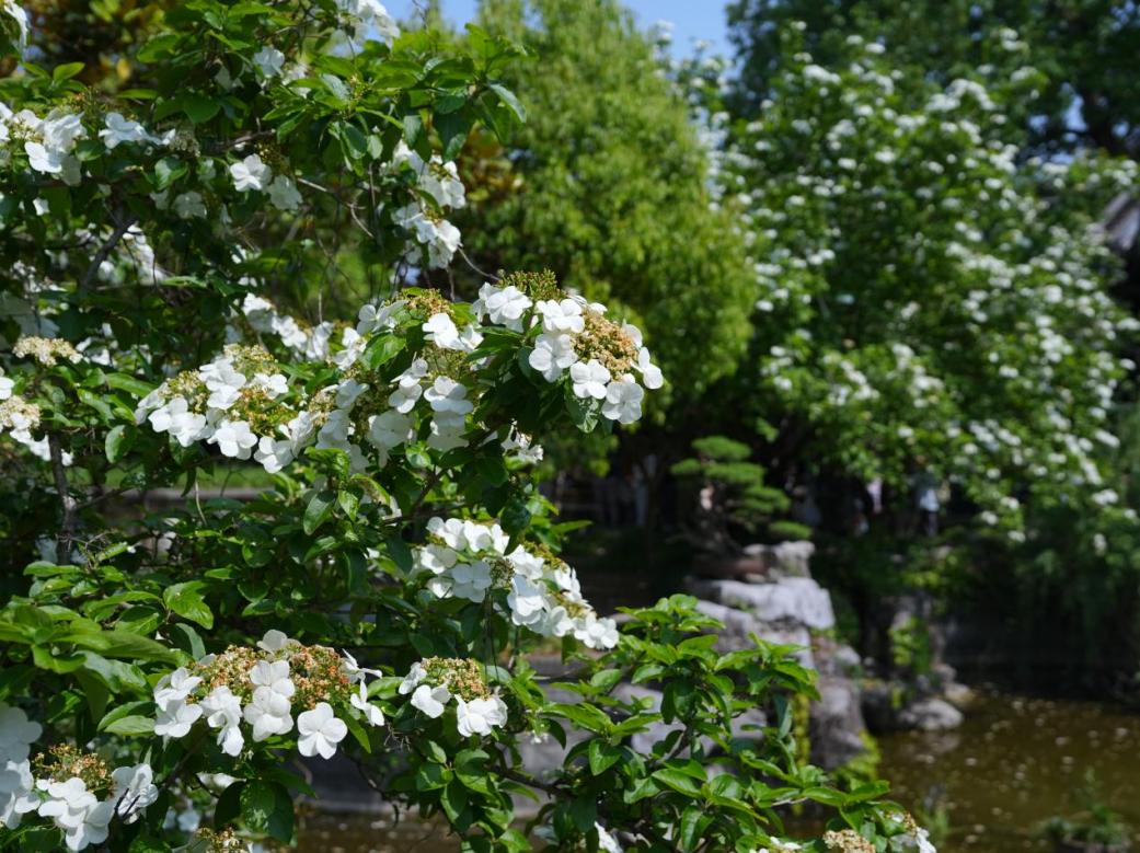 世间虽一直流传着关于琼花的美好记载,但其实古琼花在元代就已枯死,后补植“聚八仙”(即今琼花)。每到阳春三月琼花盛开时节,观内的“聚八仙”依旧以其动人的姿态与清幽的香气点缀着广陵的春天。
