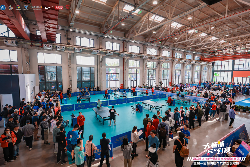 乒乓球的热浪席卷上海。4月25日下午,2026上海乒乓球嘉年华杨浦赛区暨第一届杨浦区乒乓球超级联赛就在复兴岛船台PARK盛大开幕。