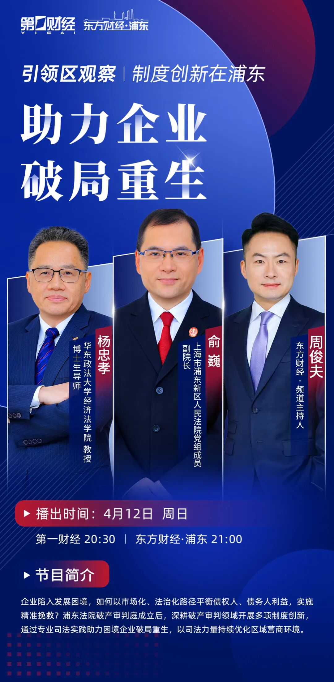 企业陷入发展困境,如何以市场化、法治化路径平衡债权人、债务人利益,实施精准挽救?近日,正值浦东开发开放36周年之际,《引领区观察》节目聚焦浦东法院破产审判庭成立后,深耕破产审判领域开展多项制度创新,通过专业司法实践助力困境企业破局重生,以司法力量持续优化区域营商环境。