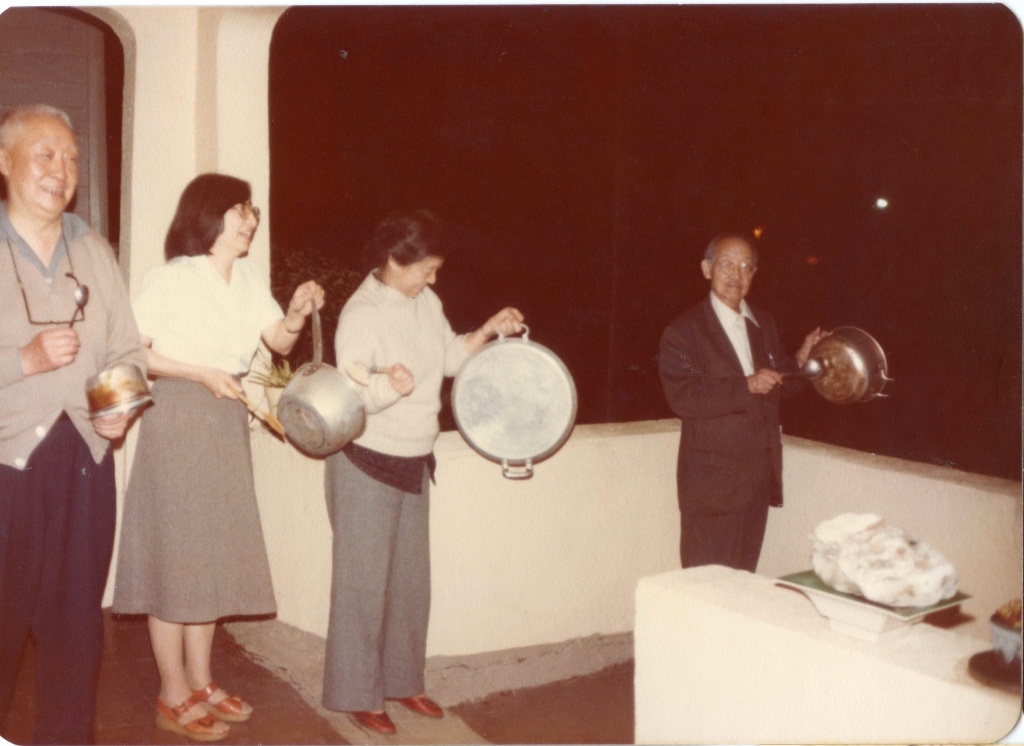 1980年元旦,晚年赵元任带着家人一起敲锅庆贺新年时刻的到来。