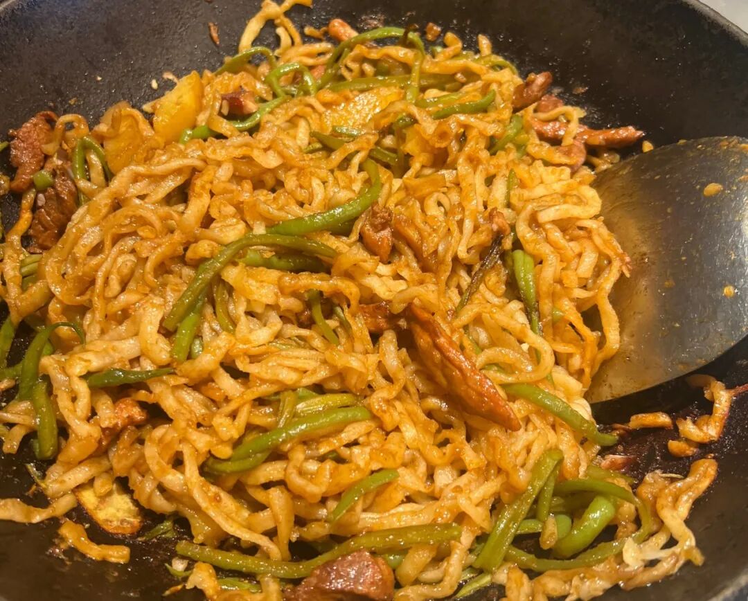 筋道弹牙、油润不干,咸香醇厚、锅气足、肉香+菜香的完美融合,是异地游子最爱的“家乡味道”。