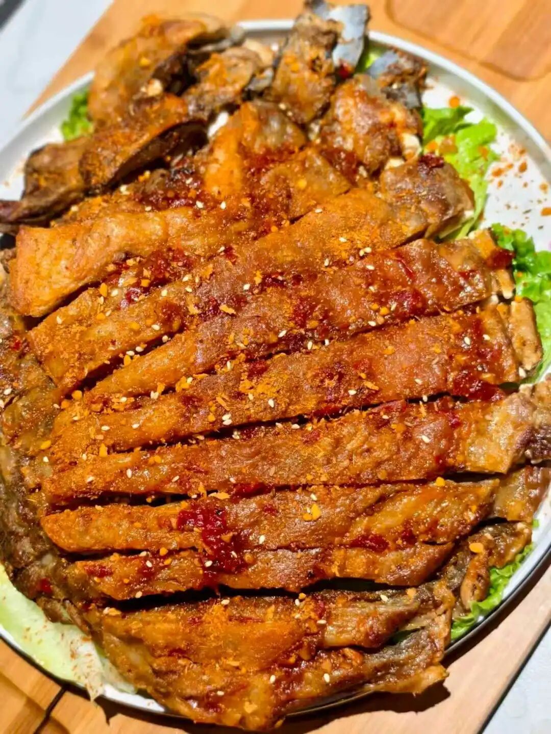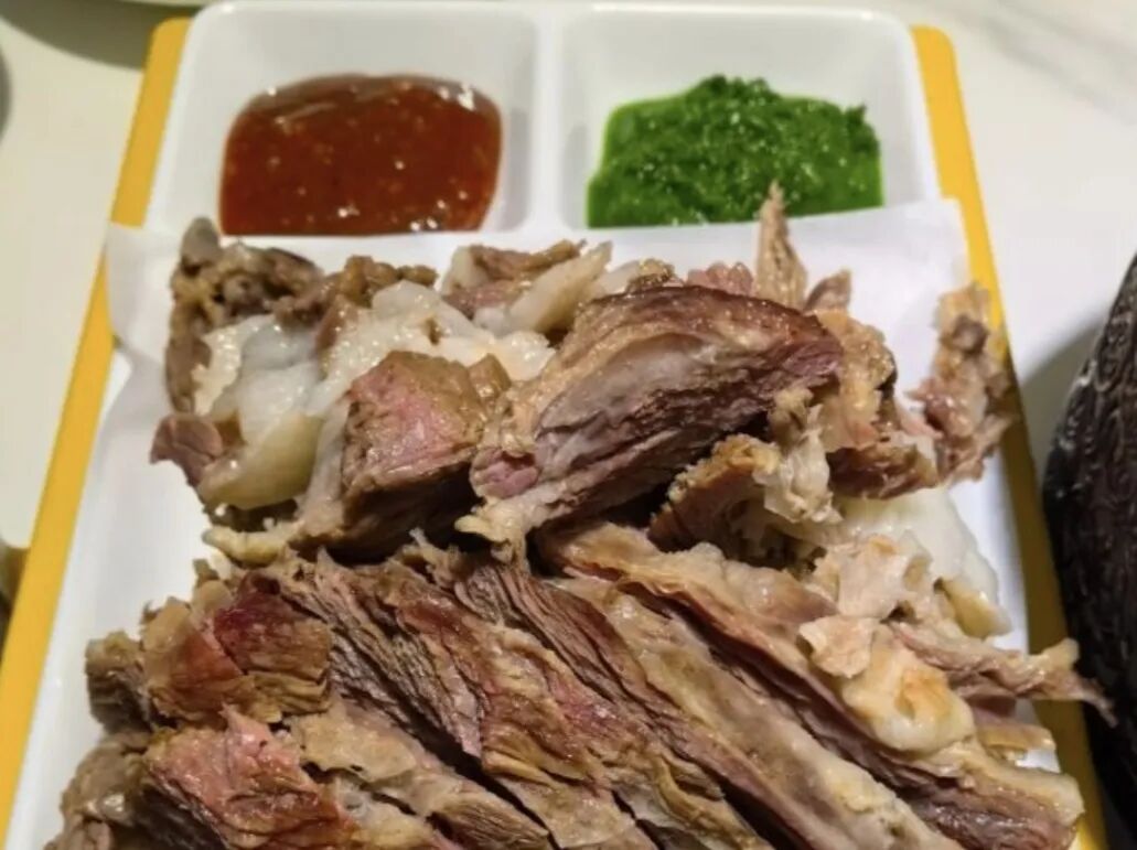 外皮金黄焦脆,撕开时肉汁四溢,肉质嫩到脱骨,丝毫没有膻味,一口沦陷。