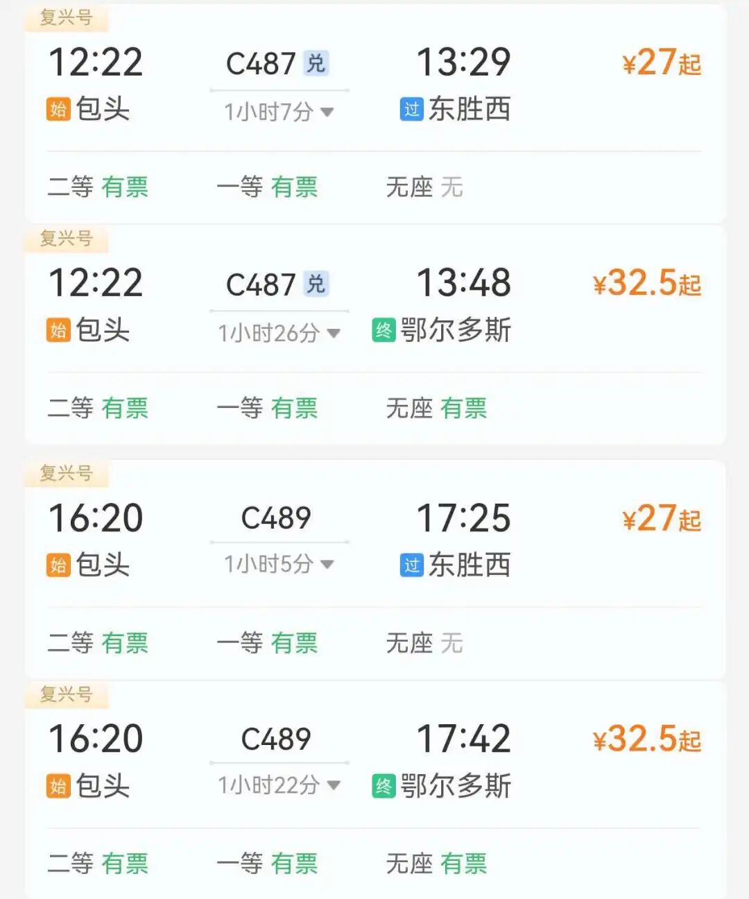 ↓包头至鄂尔多斯推荐车次↓