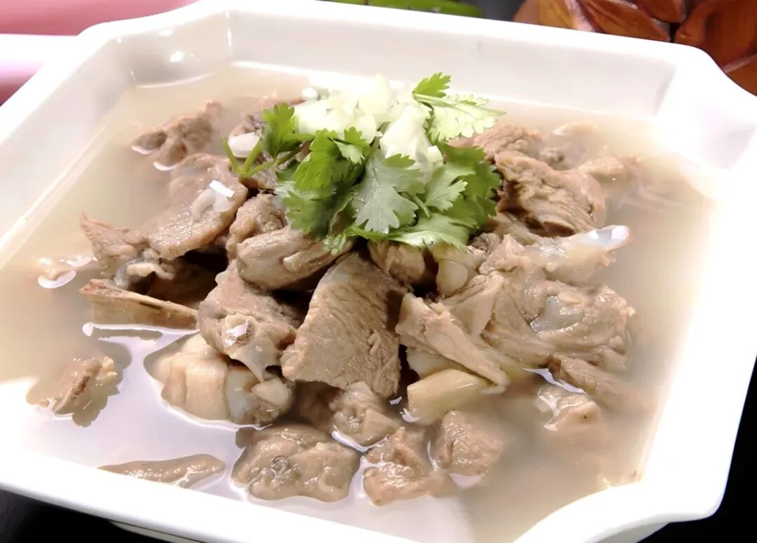 用鄂尔多斯特产阿尔巴斯绒山羊慢炖,肉质细嫩、汤鲜肉香,是当地羊肉中的极品。