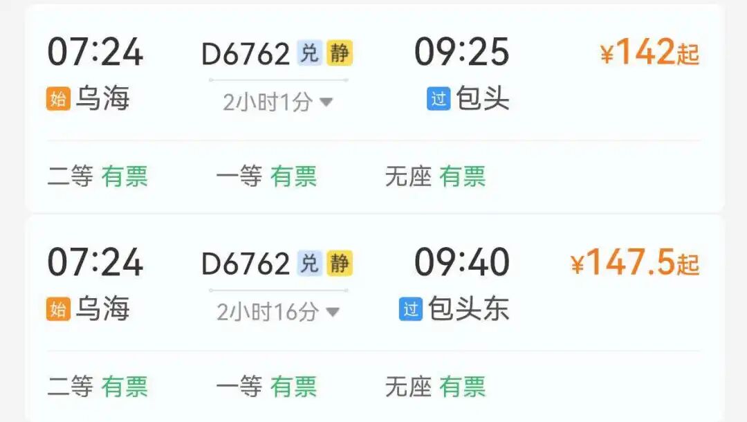 ↓乌海至包头推荐车次↓