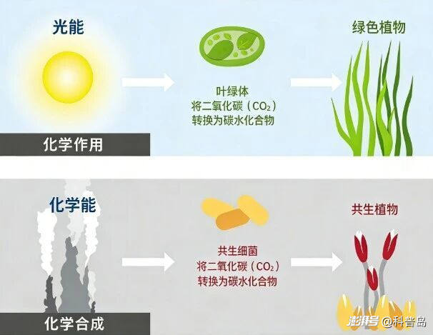 光合作用与化能合成比较(图片来源:改自GEOMAR)