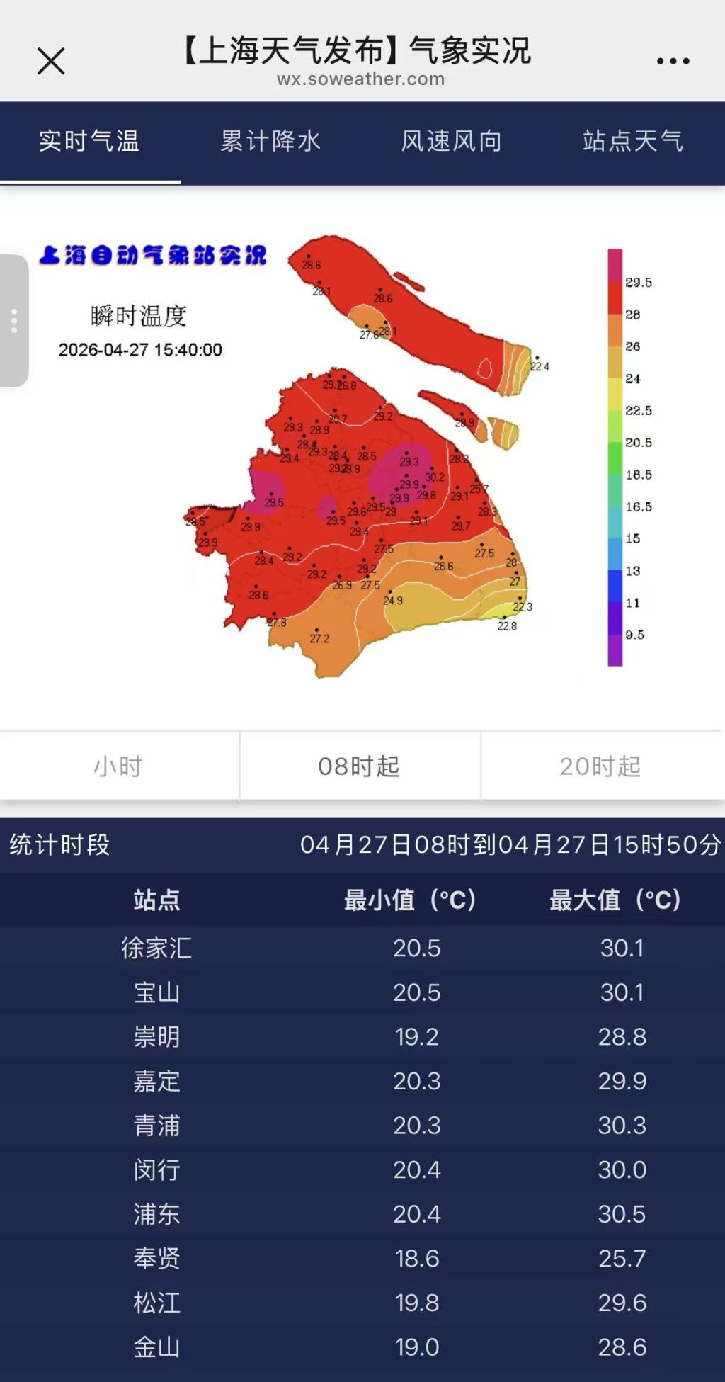今天(4月27日),上海徐家汇站最高气温达30.1℃,迎来今年首个30℃+。