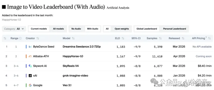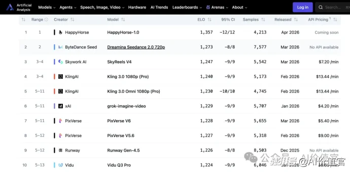 4月7日,Artificial Analysis Video Arena排行榜上悄然出现了一个匿名模型。没有公司背书,没有任何官方说明,它就这样安静登顶——然后以约60个Elo分的优势,在文生视频和图生视频两个赛道同时压过Seedance 2.0,把可灵3.0、Sora 2 Pro乃至Google Veo 3.1全部甩在身后。