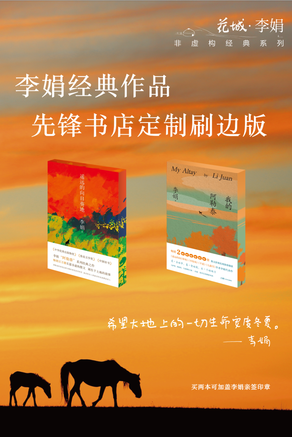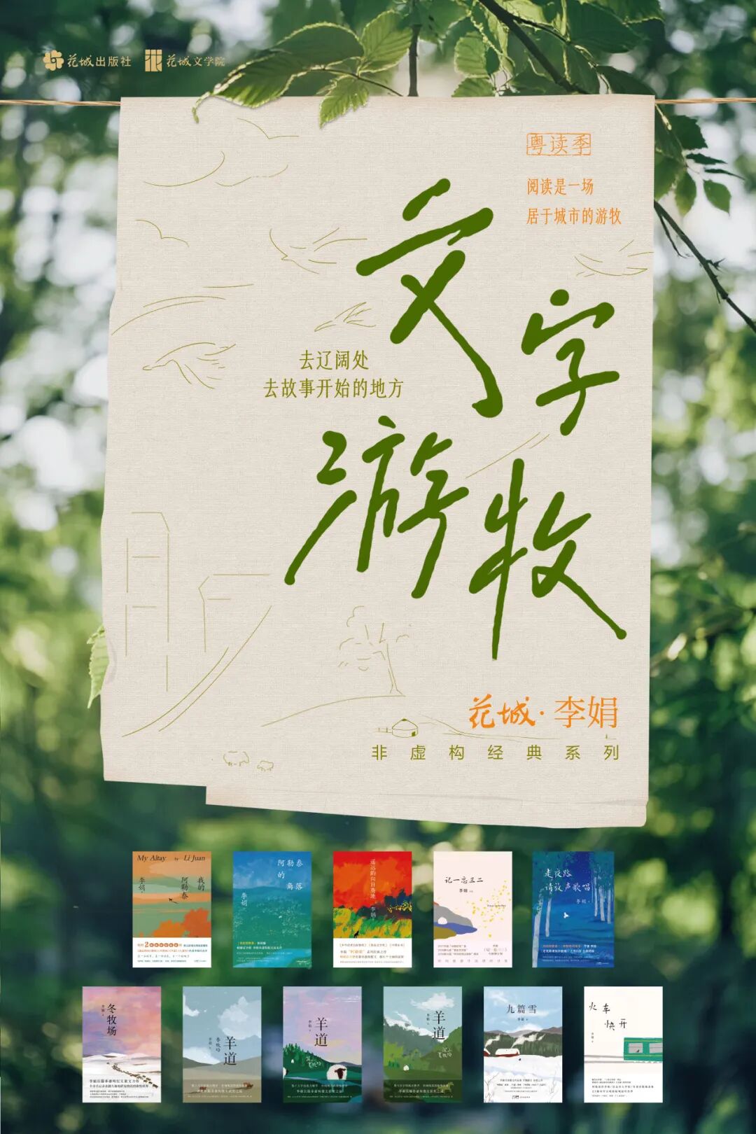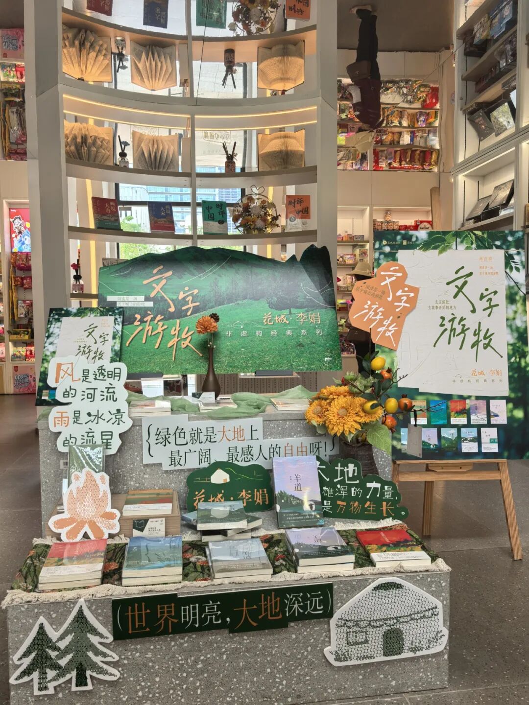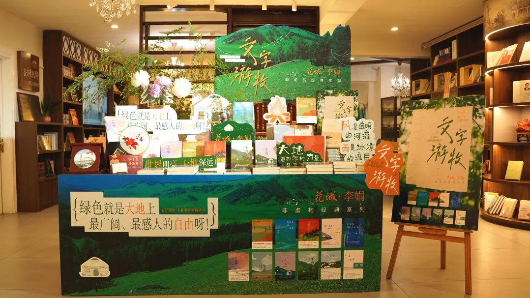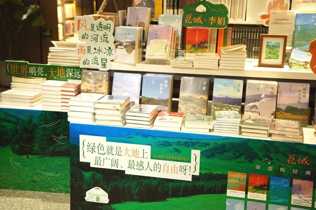 自4月广东省“全民阅读活动周”开启,花城出版社联合广东省新华集团发起【粤读季】“文字游牧——去辽阔处·去故事开始的地方”系列展陈邀请,在省内近30家书店设置了“李娟”作品主题展陈及互动体验;在先锋书店22家门店开启李娟经典作品限定版展销及专属印章集章活动。