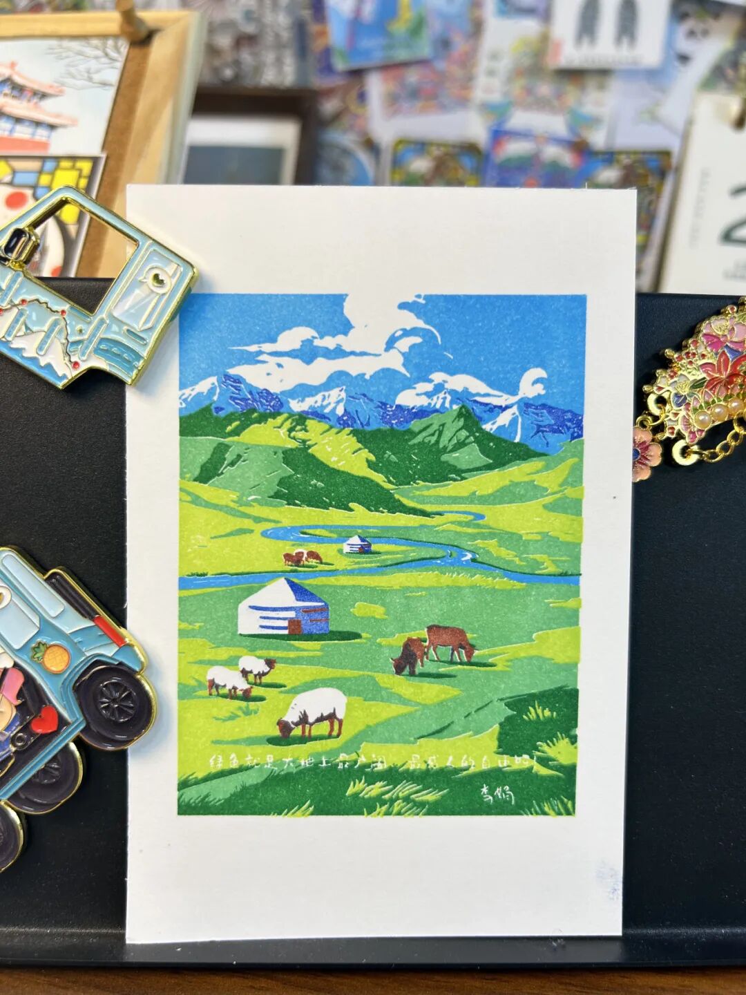 “游牧在春天”七色套印章,设计理念源自阿勒泰实景与李娟老师作品: