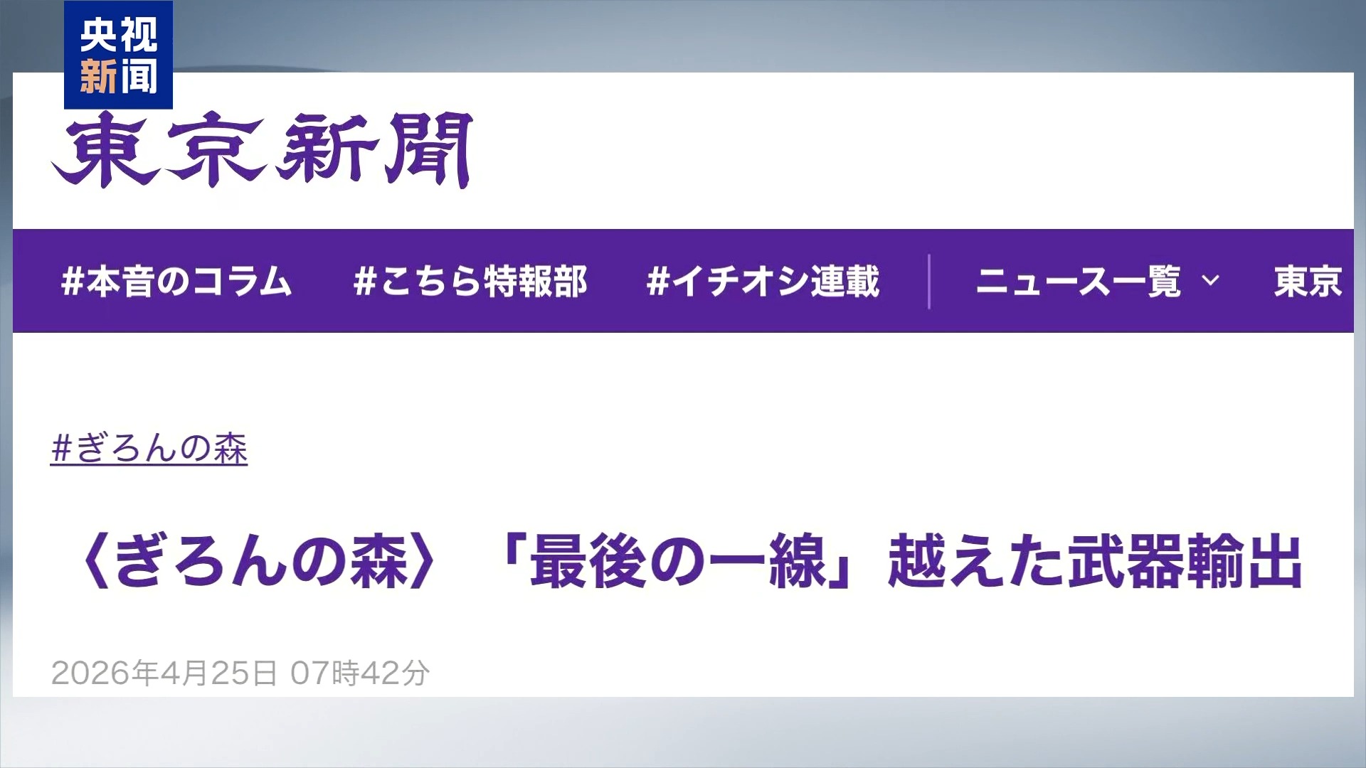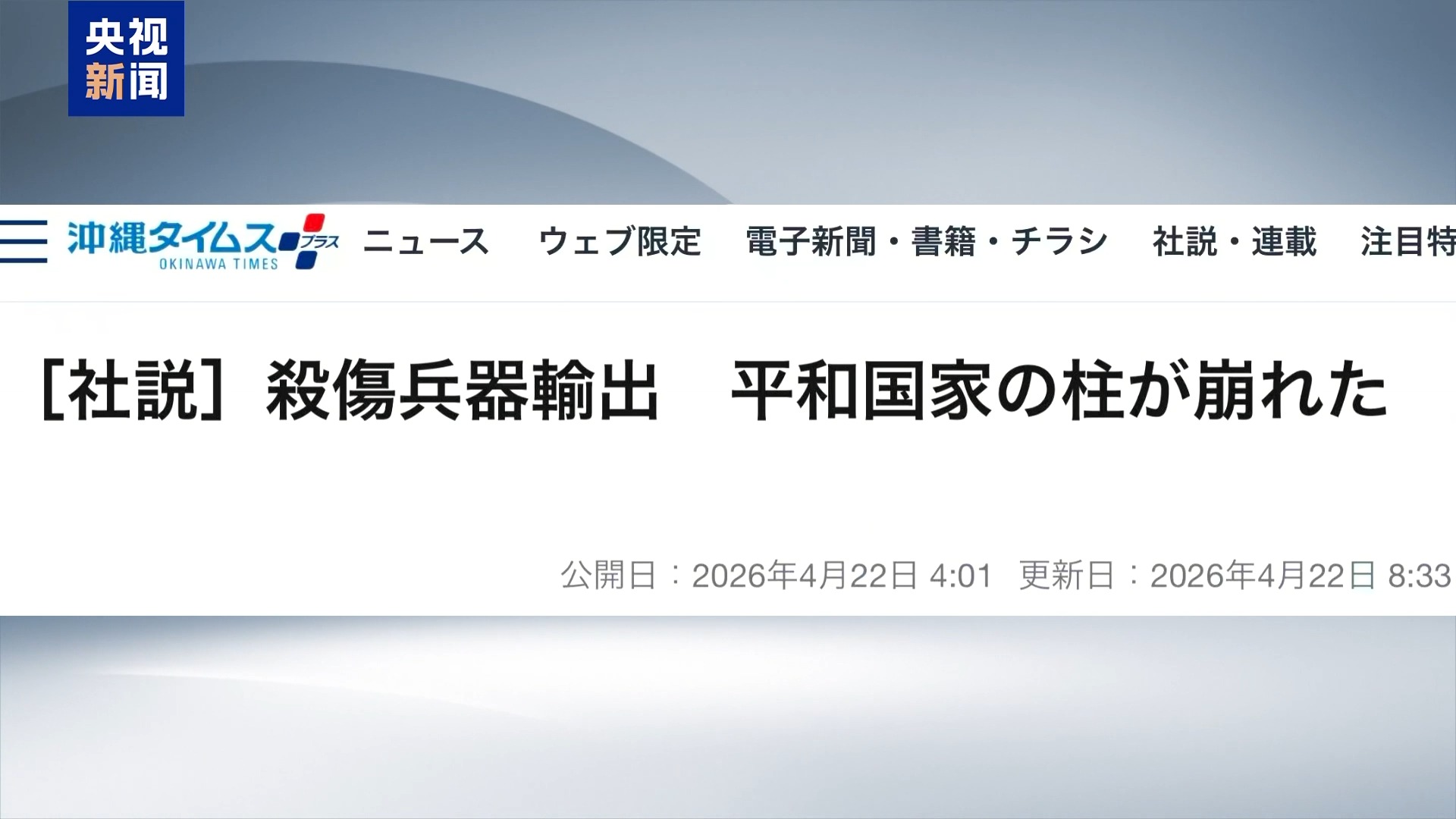 日本《冲绳时报》近日撰文指出,日本政府解禁杀伤性武器出口,标志着日本作为“和平国家”的支柱已经崩塌。文章直言,日本首相高市早苗所称的坚持和平国家的基本理念并未改变纯属诡辩,出口杀伤性武器实则在破坏和平国家的根基。