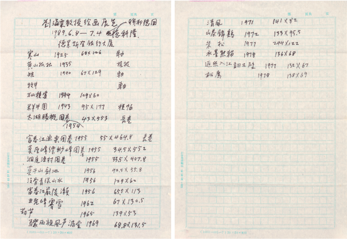 德国科隆画展清单二页 纸本 软片 1989 年作。此清单为 1989 年刘海粟受邀赴德国科隆举办画展所记,共二页。