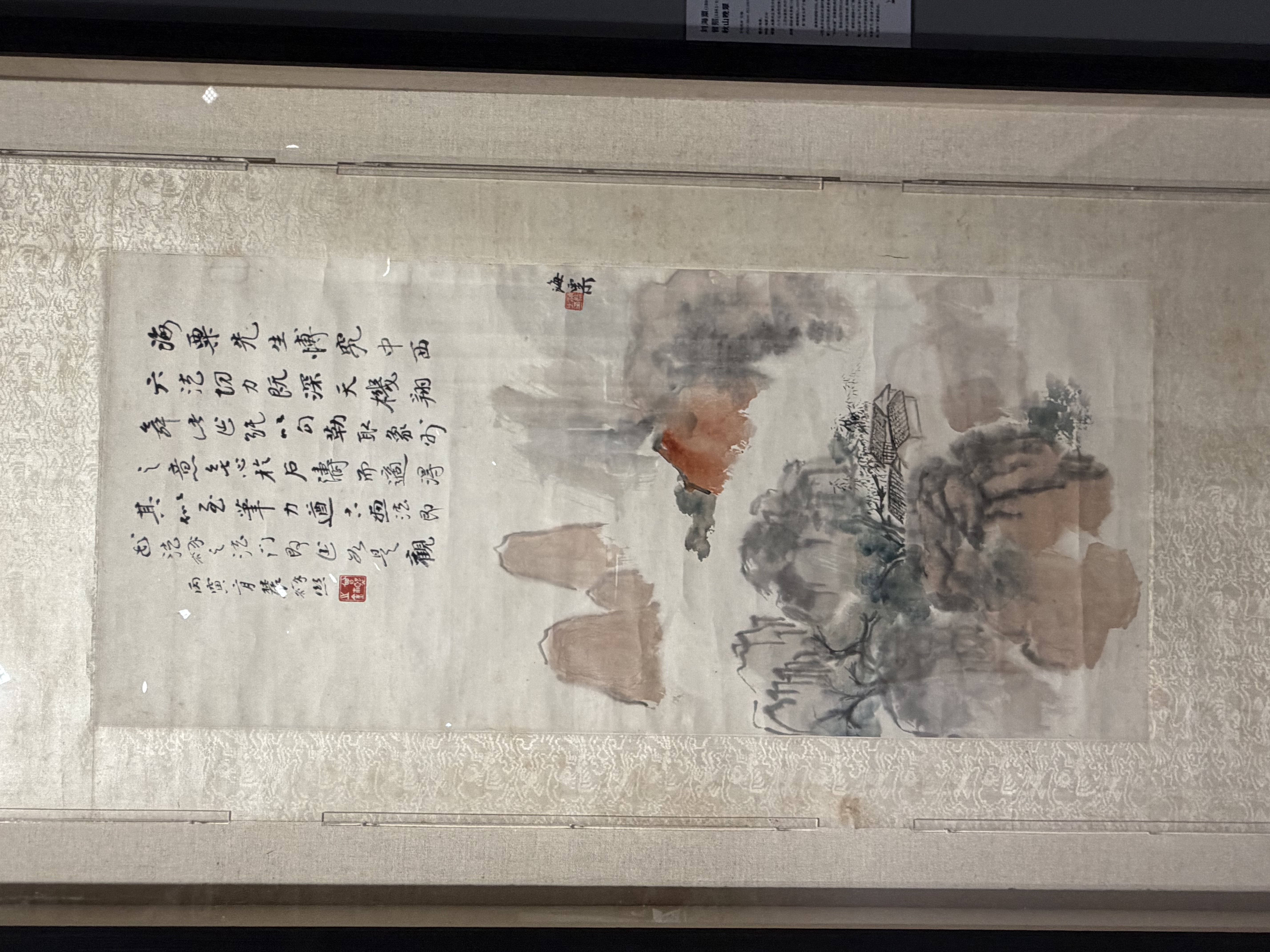 其中,作于1926年山水画上有曾熙题字:“海粟先生博究中西,六法切力,既深天机翔舞。此作纯以勾勒取象外之意,无心于石涛而适得其似,笔力道古,画法即书法。髯之法门即作如是观。丙寅二月农髯熙。”