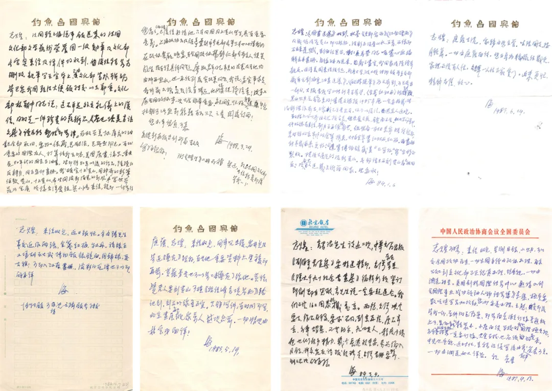 展出的刘海粟致袁志煌信札共五十通,其中连信封二十六通,无信封二十四通。这五十封书信贯穿刘海粟晚年,大多集中书写于二十世纪八十年代,展现了他晚年的艺术追求与生活状态。书信内容涵盖多个领域,既有艺术上的重大事件,也有琐碎的日常事务安排,字里行间满是对袁志煌的认可与倚重。