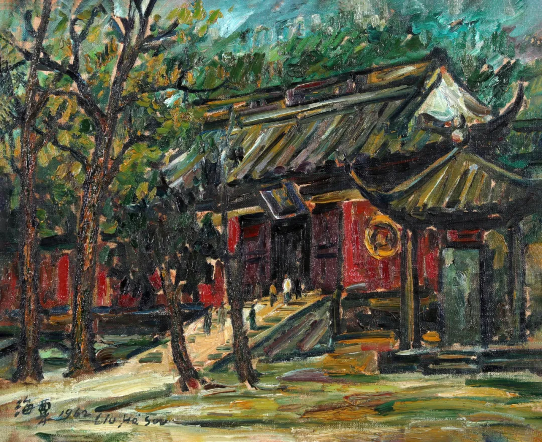 刘海粟《南屏晚钟》布面油画 镜框 1962年作