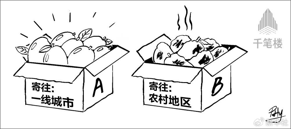同一款商品、同一个链接、同一家店铺,寄到省会城市的菠萝新鲜饱满,寄到农村乡下的则青黑干瘪;一线城市收到的电饭锅是热门款、正品货,县城乡镇收到的却是滞销版、伪劣品……