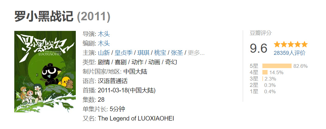 按照片长,《罗小黑战记》可以被视为一个泡面番。但它又不像大多数泡面番那样短平快、廉价化、快餐化,目前番剧版《罗小黑战记》在豆瓣上的评分高达9.6分,位列国产动画剧集之首。哪怕更新频率如此之慢,《罗小黑战记》始终维持挺高的热度,并最终顺利推出电影版。这在国漫原创IP里,实属罕见。