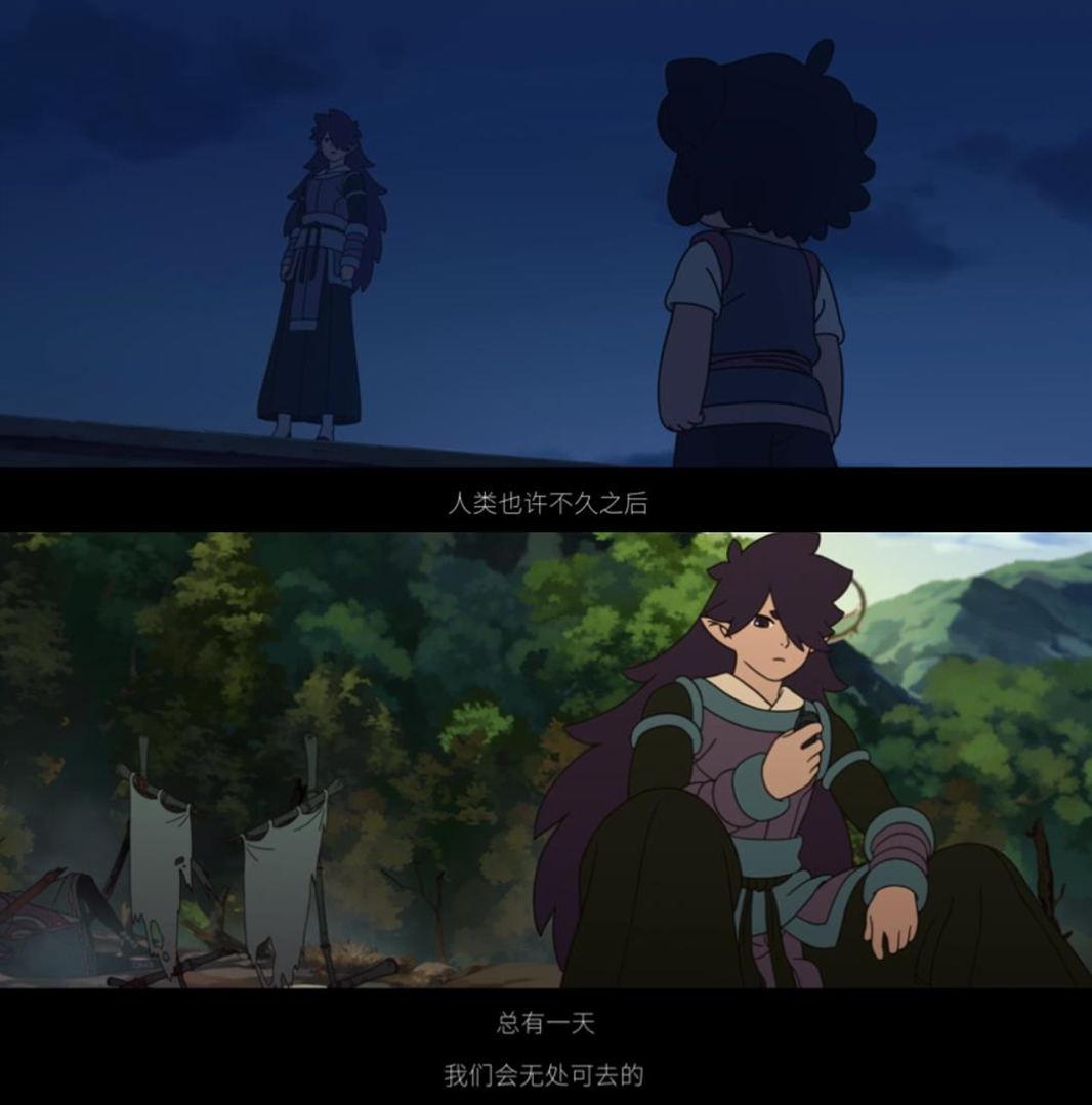 撇开具体设定不说,其主题的表达也比较老生常谈。人类发展扩张,破坏了环境,侵占了妖精的家乡,妖精准备奋起反抗……这种人类与异族的冲突,在《黑衣人》《X战警》《驯龙高手》《阿凡达》等中都有过了。但《罗小黑战记》在深度上并没有更上一层。人类社会的进步是伴随着对自然环境的开发,这很难简单地归纳为“作恶”,风息的反抗动机也不够充分和有说服力,转变稍显突兀。换句话说,正派、反派都很平面化。