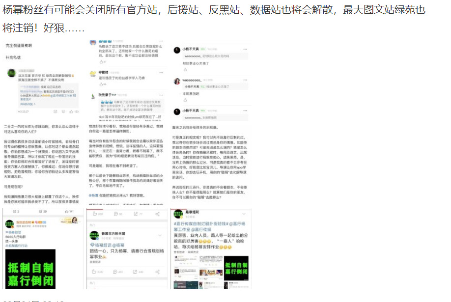9月4日早上,有60多万粉丝的杨幂官方粉丝团账号发文控诉杨幂工作室,指出杨幂粉丝与工作室多次沟通无果,信任破裂,不得已采用公开方式告知工作室粉丝各项诉求。铁粉们都将头像换成了黑底绿字的“抵制自制,嘉行倒闭”。