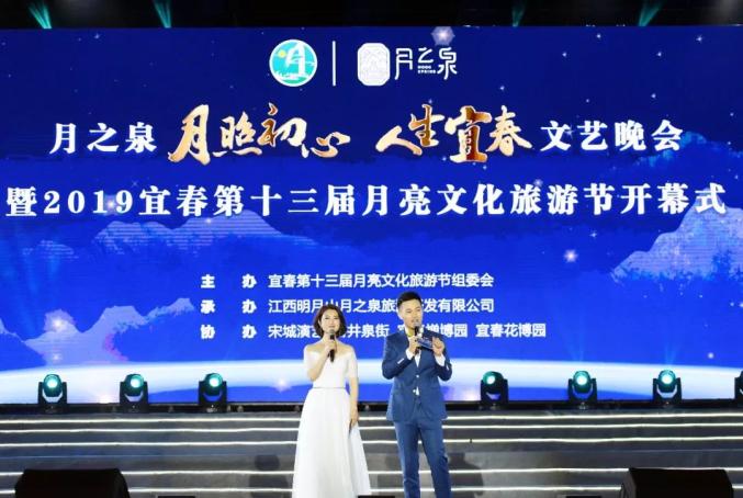 当晚,明月山温泉风景名胜区明月千古情广场上,华灯璀璨,歌声飞扬,洋溢着一派喜庆热烈的氛围。由宜春第十三届月亮文化旅游节组委会主办,江西明月山月之泉旅游开发有限公司承办,宋城演艺集团、古井泉街、宜春禅博园、宜春花博园协办的月之泉“月照初心·人生宜春”文艺晚会暨2019宜春第十三届月亮文化旅游节开幕式在这里隆重举行。