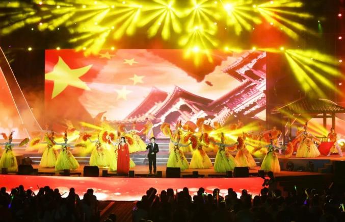 以欢乐的歌声和热情的舞蹈共祝我们伟大的祖国