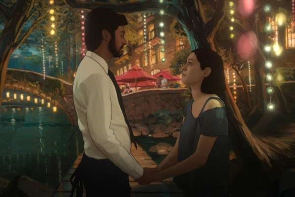 可定睛一看,其实还是一个带着手绘风格的二维动画。这种真人转描的技术,让动画成为了真人演员拍摄画面的二次创作,从而营造出如同投射在玻璃荧屏上随光影流动一般的浮光掠影质感。