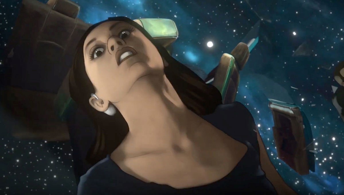 故而,不管是在观剧的视觉体验,还是单纯剧中的逻辑分析,《未了之事》都做出了高于以往动画本质的高概念形式。而睥睨于《爱,死亡,机器人》的脑洞向科幻设定之外,《未了之事》更独特的,是把剧情的制高点落在了女主阿尔玛这个角色身上。通过一次一次的时间倒错,阿尔玛一次次重新来过同样的场景,用不断自省的道歉来挽回本来不欢而散的悲剧结局。
