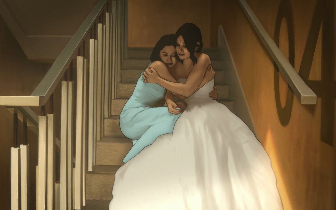 ROTOSCOPING(真人转描)技术成就了《未了之事》独具细节质感的奇特画风。用无限接近的三次元真人感形容它,再合适不过。它能够逼真到,你可以一眼认出这是谁的模样,甚至能够看到人物的微观表情和情绪。