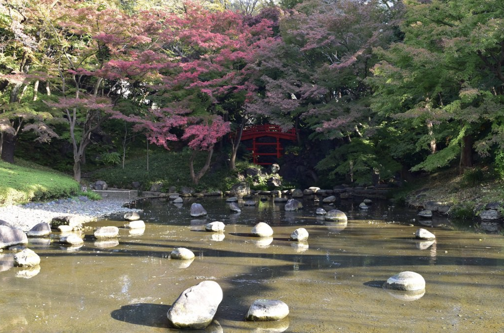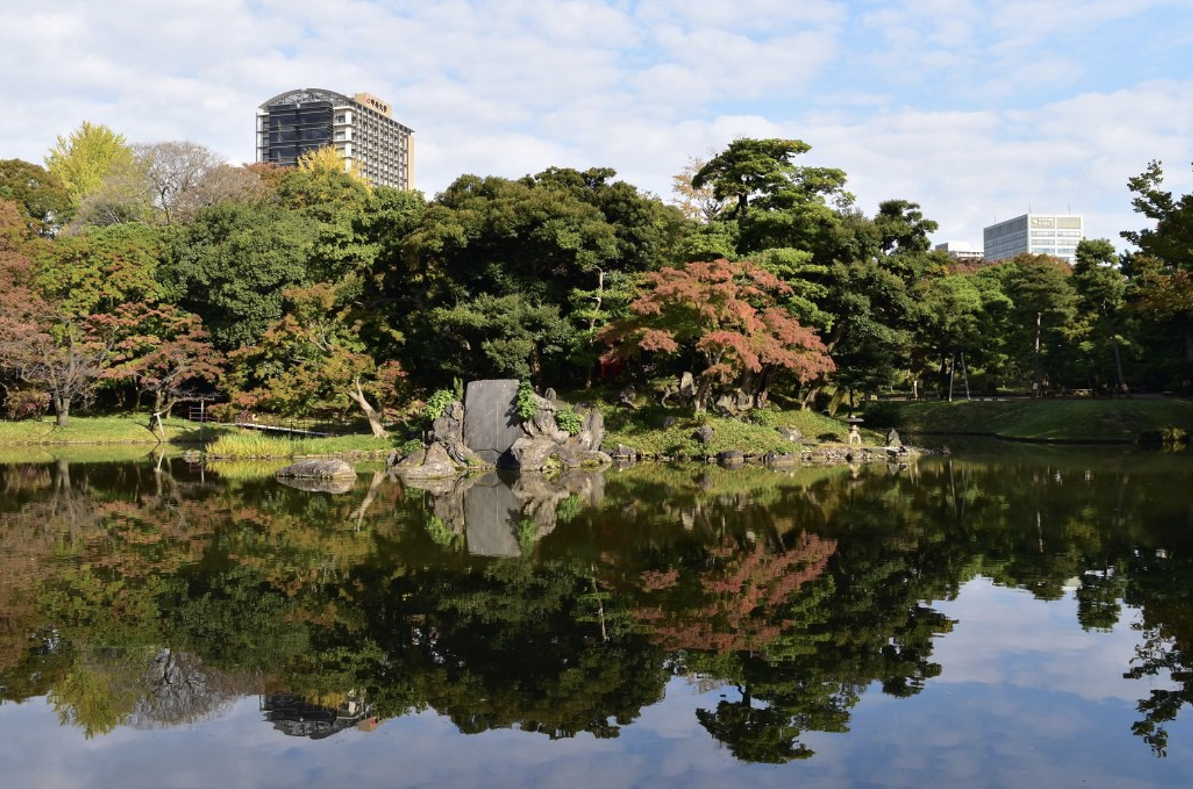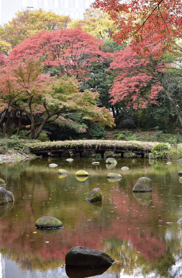 从后乐园车站下车,不到10分钟,就来到了位于东京都文京区小石川町的“小石川后乐园”。这是一座典型的池泉回游式的日本庭院,即庭院中央有一个大池塘,池中建有一个小岛,有小桥有奇石,周围是花园小径,游客可以绕着池塘观赏景致。