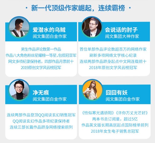 基于体系化、专业化的作家培养机制,2019年中生代作家崛起趋势更加明显,新人作家快速上升。中坚力量和新生力量互促,形成了更加精品、新颖、多元、健康的网络文学内容形态和创作者梯队结构。