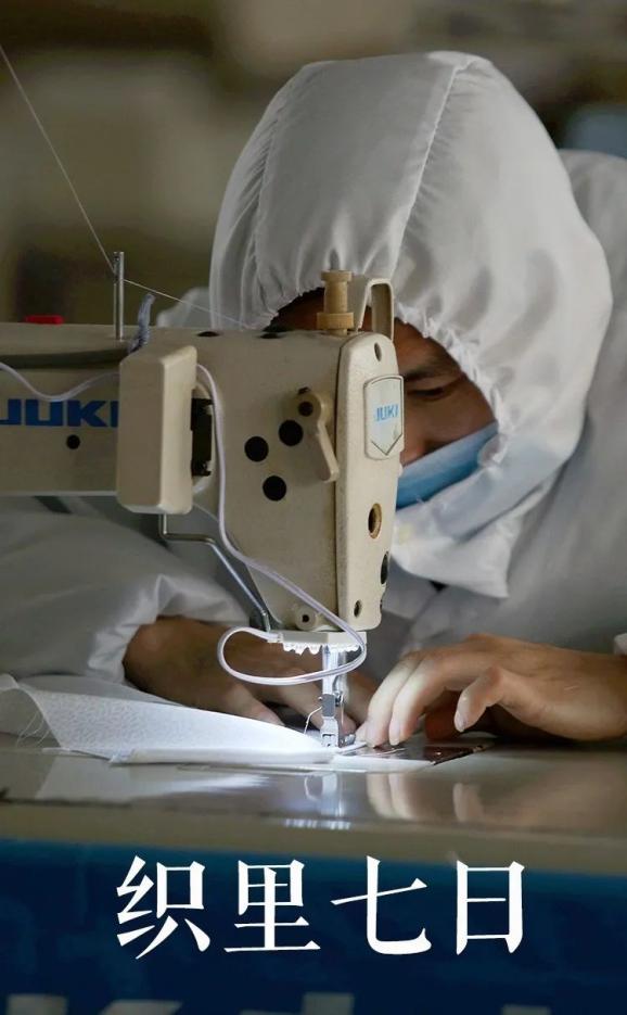 2月21日,织里镇,“全副武装”的员工在赶制订单产品。安全开工,成为今春织里童装产业的头等大事。