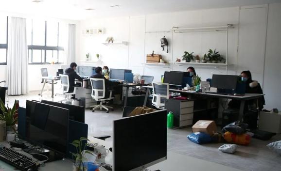 2月21日,织里镇弗兰尼尔服饰有限公司,人员还未全部到位的贸易部。