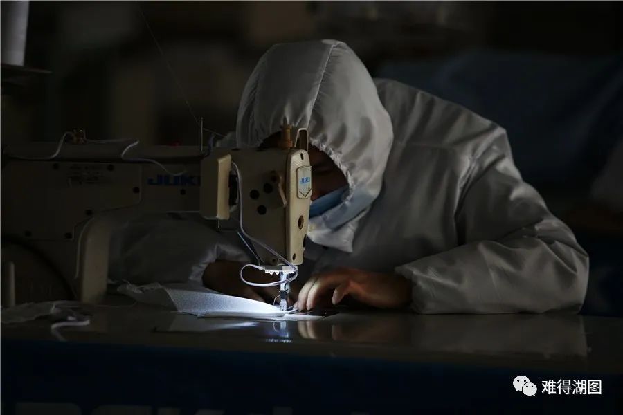 2月21日,湖州弗兰尼尔服饰有限公司,部分车间已经开工,公司正组织本地员工生产。考虑到防疫安全,企业还为员工自制了防护服。