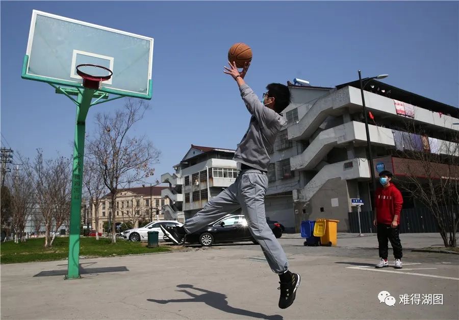 2月22日中午,天气晴好,织里镇大河社区,两位还没开学的学生在打球。