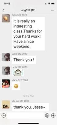 Nathan老师虽然滞留国外,但从一月底就进入网课准备状态,网上查找课文相关资料分享给学生提前预习。Jesse老师留在武汉,利用自己丰富的教学经验组织课堂教学。他认为线上课程需要更好的课堂把控能力。他说,线上课程就像烘焙蛋糕一样,需要更严格的时间控制,因此要有更清楚的教学指令和科学的教学安排。