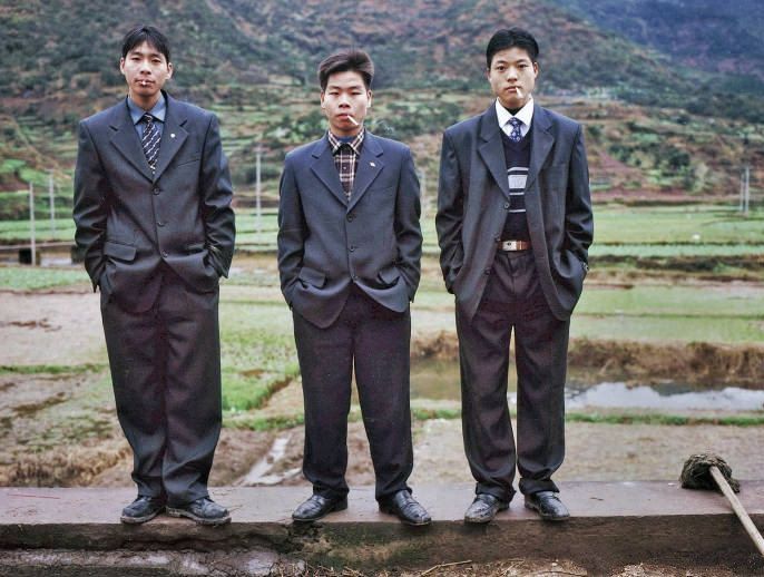 过去人们穿的中山装、解放帽的经典装饰,也开始变得有点落后、守旧了,西装革履开始成为新时尚。