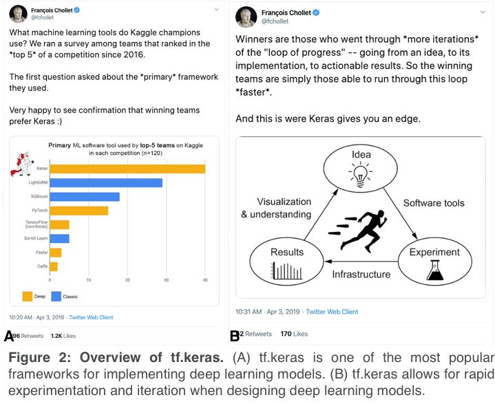 这三种硬件之间最明显的区别在于使用 tf.keras 训练模型的速度。tf.keras 库是最流行的机器学习框架之一,因为 tf.keras 可以更快、更方便地实验新想法。如果写代码的时间短,则就可以拨出更多时间进行计算。如果等代码跑完的时间短,也就可以有更多时间评估新想法了。在机器学习比赛中,tf.keras 和 TPU 是一对很强大的组合!