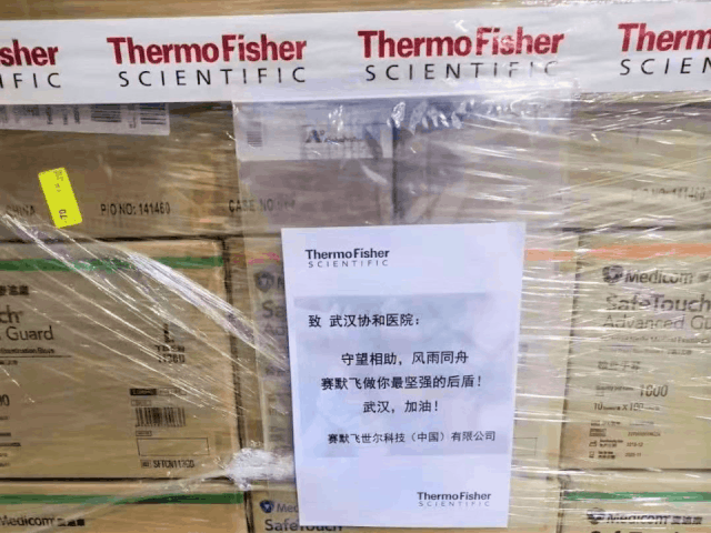 春节前夕,全国已经出现医疗物资紧缺情况,武汉多家医院告急。在得知湖北一线紧急需求的第一时间,赛默飞世尔迅速组织提供相关支持。经过各方通力协作,赛默飞世尔先后整理并确认了第一批物资清单——从美国总部紧急调运包括N95口罩、护目镜、防护服、手套在内的安全防护用品;国内各部门迅速调运前线急需的离心机、冰箱、生物安全柜等仪器设备。日前,这批总价值逾100万元的防护用品和医疗设备已经顺利抵达武汉协和医院。