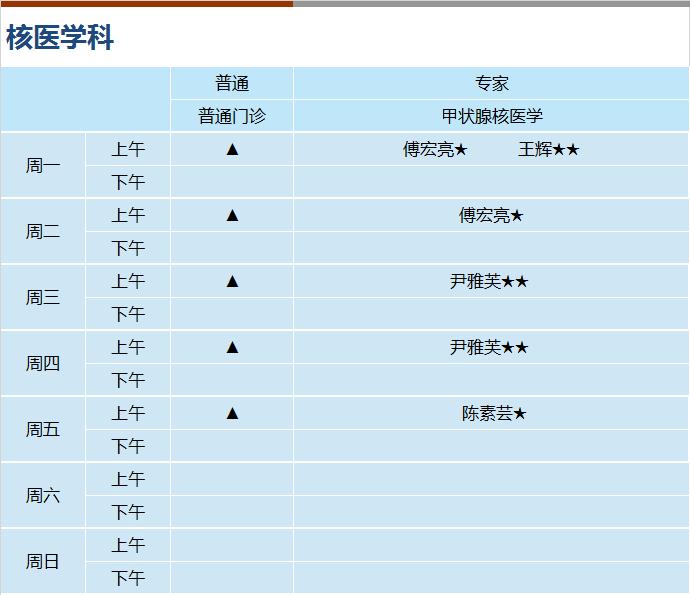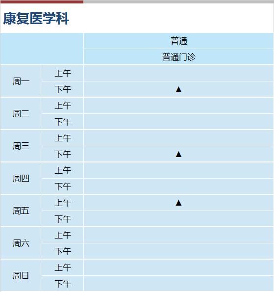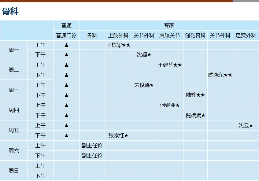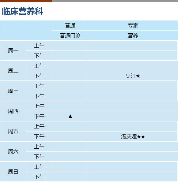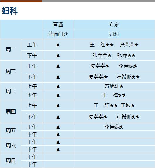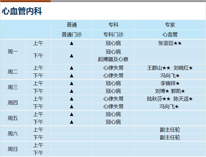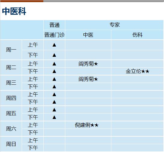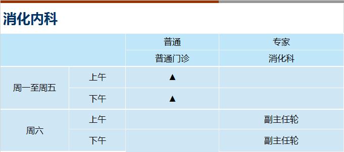心血管科、内分泌科、呼吸科、神经内科、消化科、肾内科(上午)、全科医学、风湿免疫科(上午)、普通外科、骨科、泌尿外科、妇科、皮肤科、心身科(上午)、中医内科、中医伤科、中医肛肠、中医针灸、