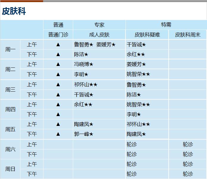 1、三个院区的皮肤科普通门诊、专科专病门诊、专家门诊、特需门诊正常开诊;
