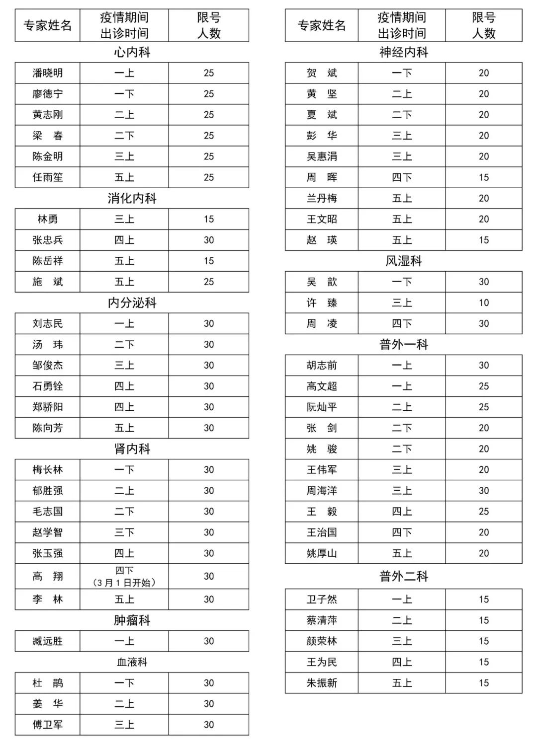 3、保德路院区暂停神经内科、肿瘤科、整形外科门诊。