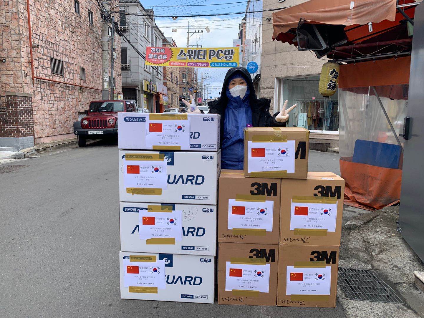 开往大邱的中国物资捐赠车 杜先生 图