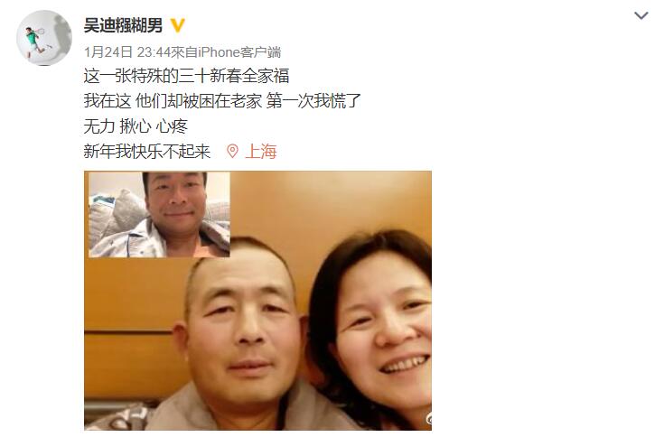 在对待疫情这件事上,父母比吴迪更加“深明大义”。原本吴迪父母打算今年春节与儿子一起过年,而且当时的武汉也并未封城,但老两口最终决定待在家中,“不给别人添麻烦”。