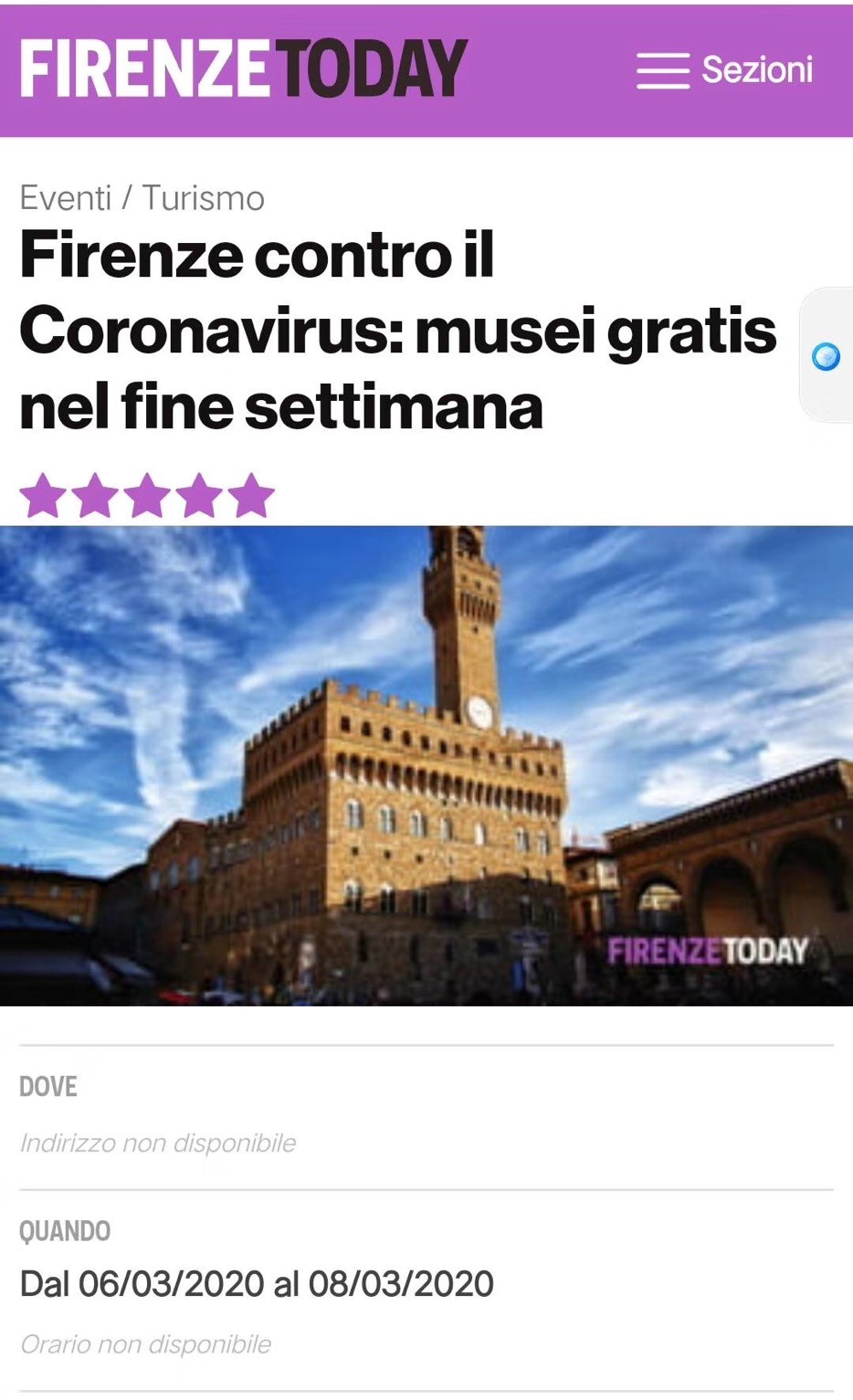 佛罗伦萨宣布3月举办持续3日的“抗击病毒特别开放日”活动,民众可免费参观博物馆。