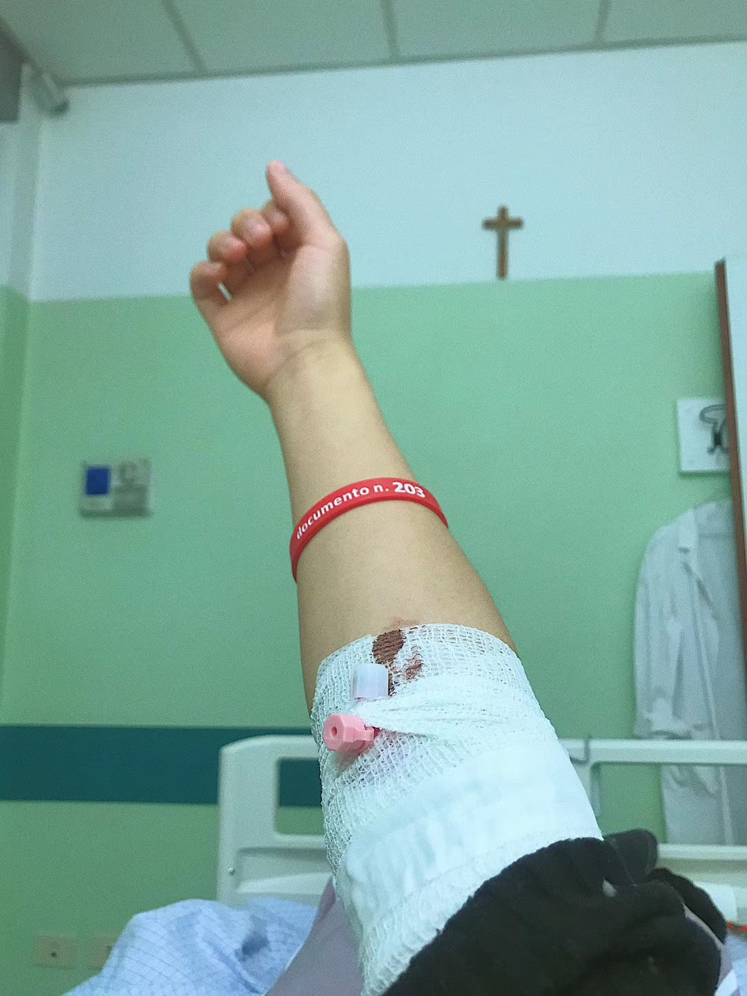 2月22日,我在意大利北边靠瑞士边境的小镇莱科(Lecco)的山上滑雪出了事,被送到了医院,进了隔离病房,因为他们不知道我的来源。我后来跟他们说我最近没回中国,也没有跟什么可疑的病人接触,没有症状,他们在我昏迷的时候给我做了核酸检测。
